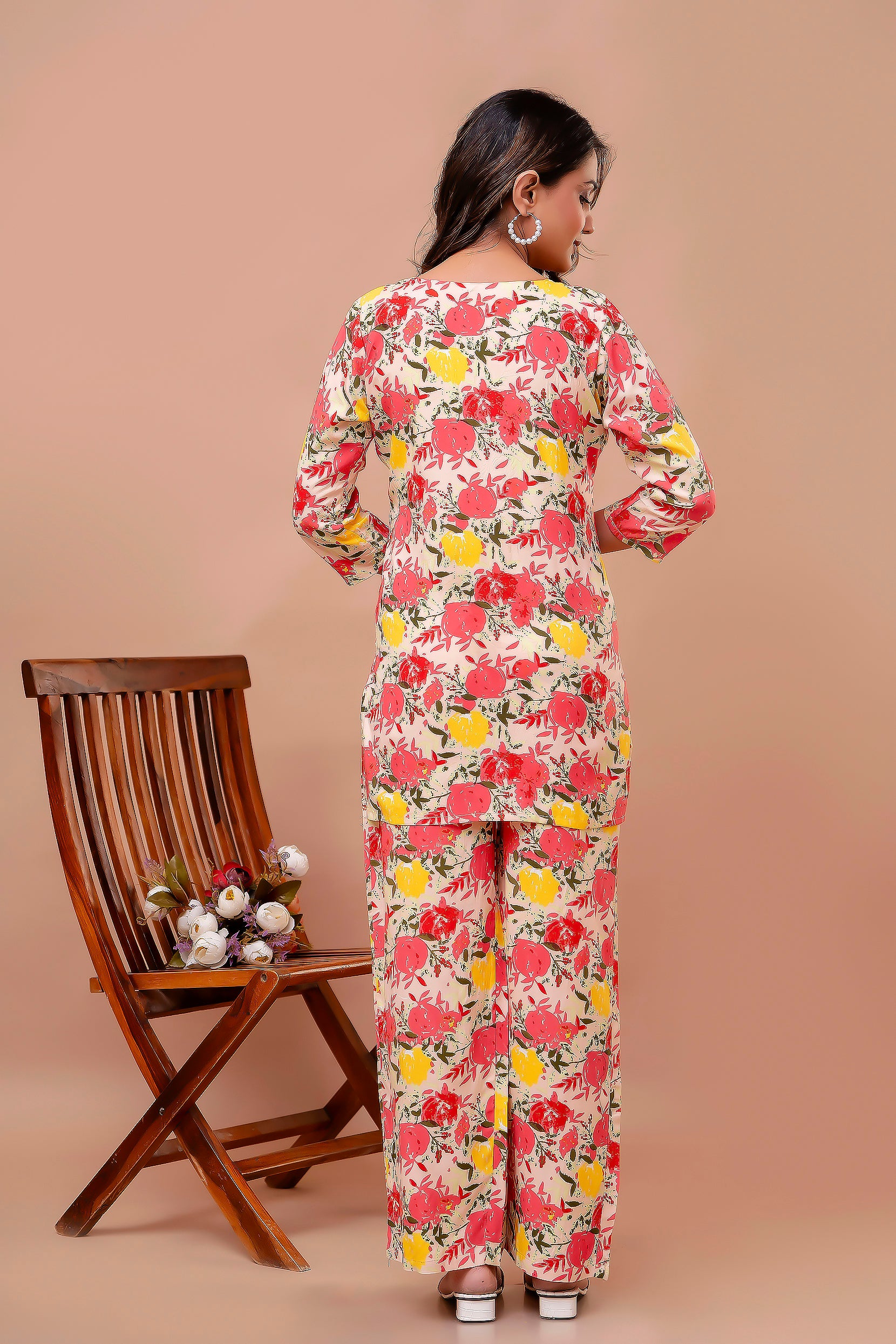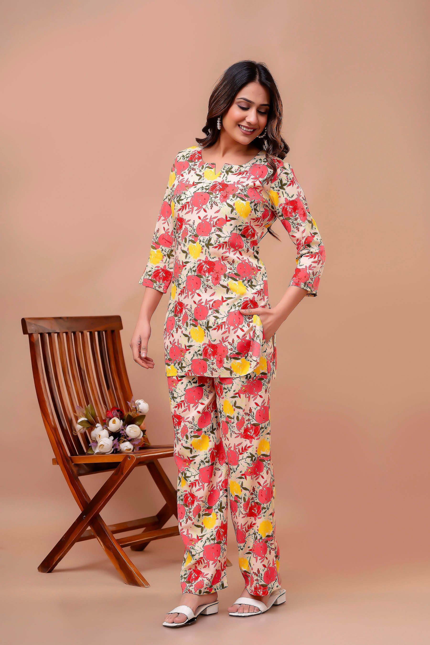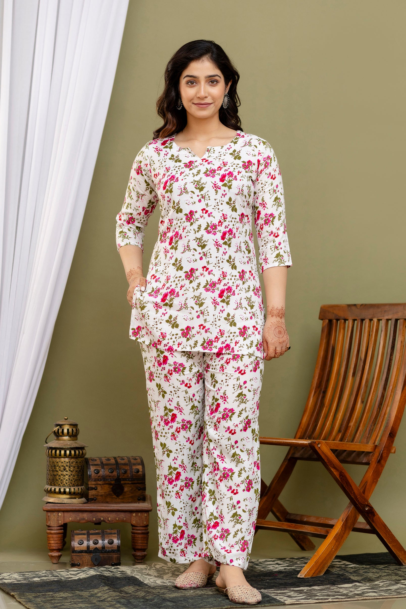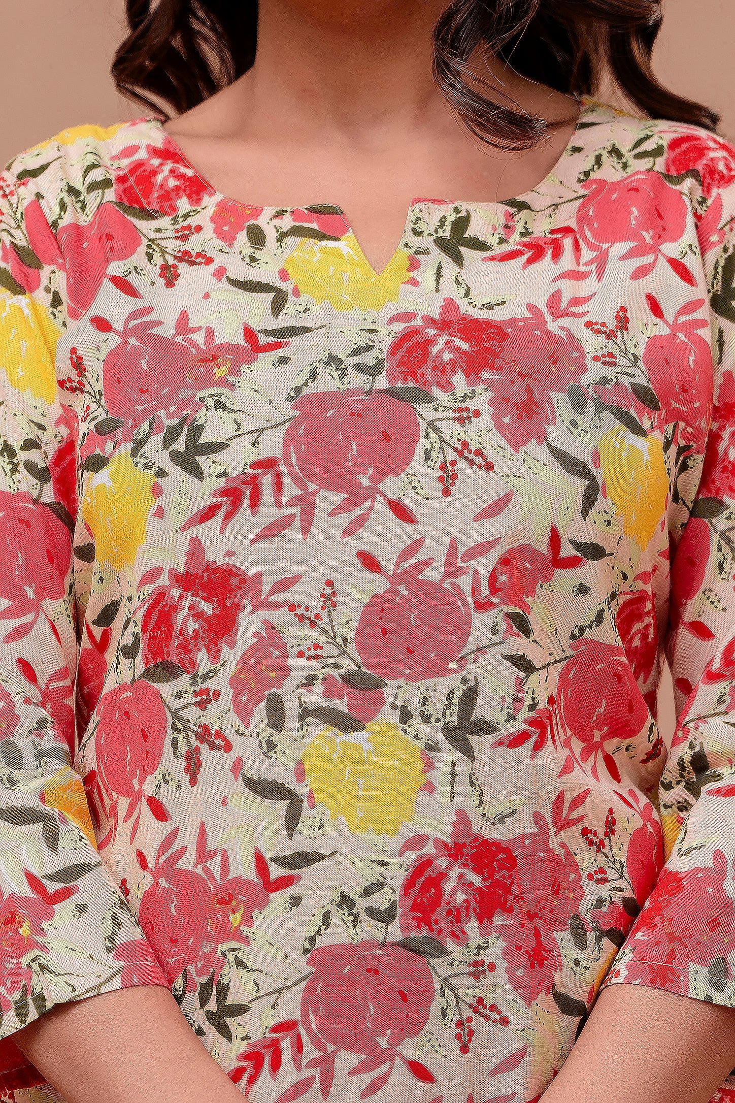 Black and white printed tunic, has a shirt collar neck and three-quarter sleeves, secured with button closure